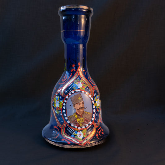 Cobalt Blue Hand-Blown Glass Hookah Base with Arabesque Motifs