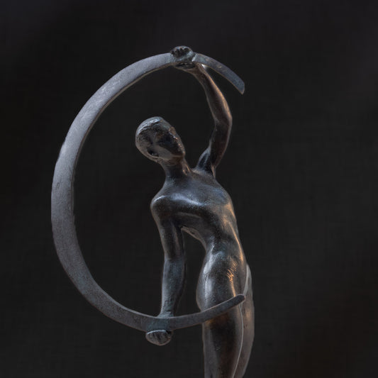 Art Deco Bronze Male Nude with Crescent on Stepped Base