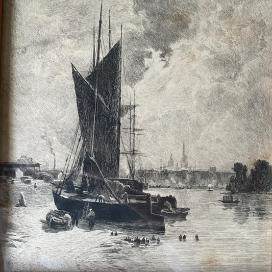 Theophile Chauvel Etching - "Barges near Rouen"