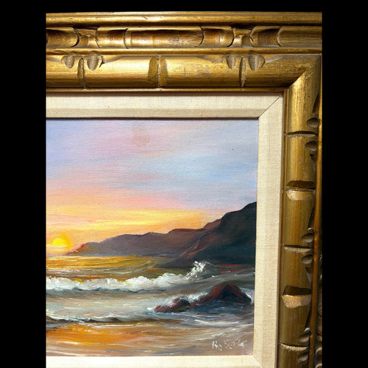 Roberts Signed Seascape Oil Painting - Sunset