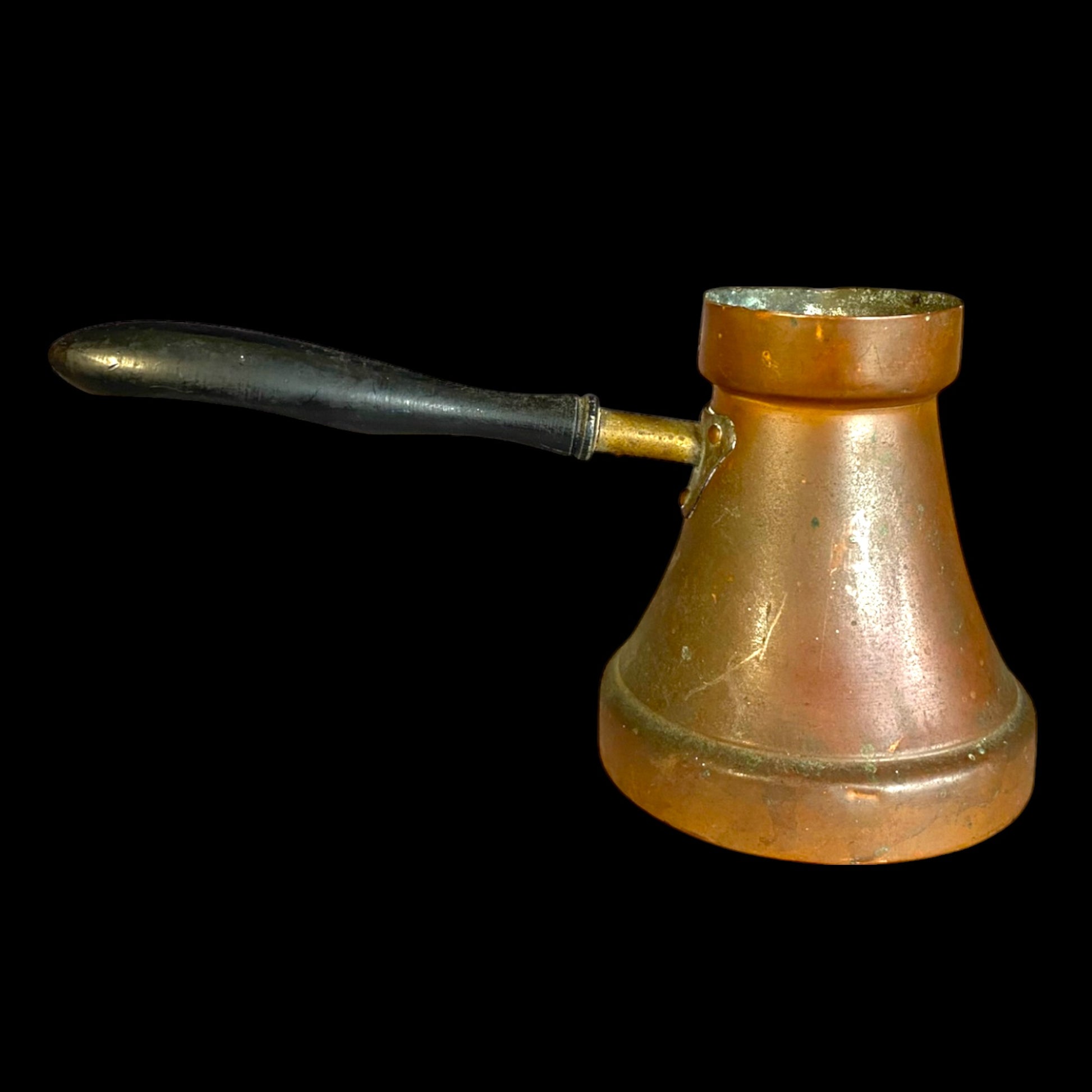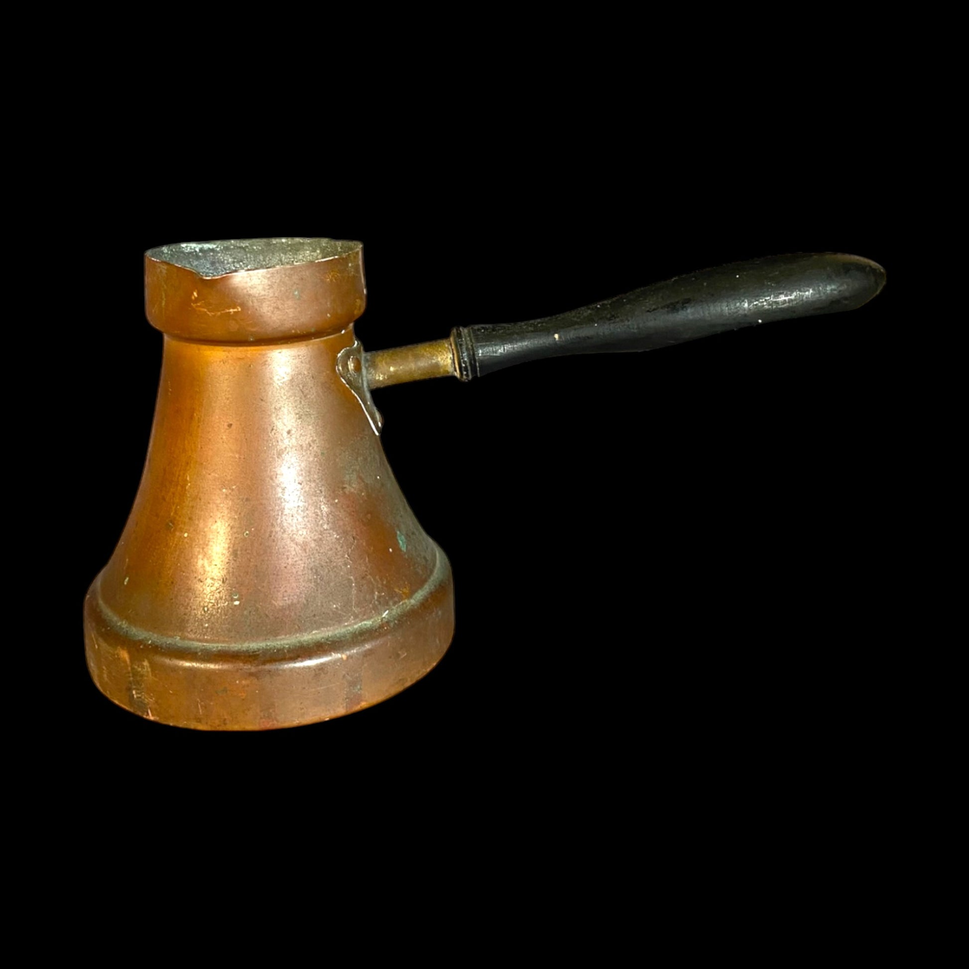 A very old piece yet functional piece of decoration this Antique Coffee pot is a staple of Eastern European and Middle Eastern Homes. Made from Copper with a hand carved wooden handle this charming "Rakwe" will add an eclectic touch to your kitchen. Not only will it add an old world feel to your home, it is completely functional and great for those with minimalism in mind as you can display your Rakwe and enjoy it too. Found in Beirut Lebanon, it is made in the Czech Republic.