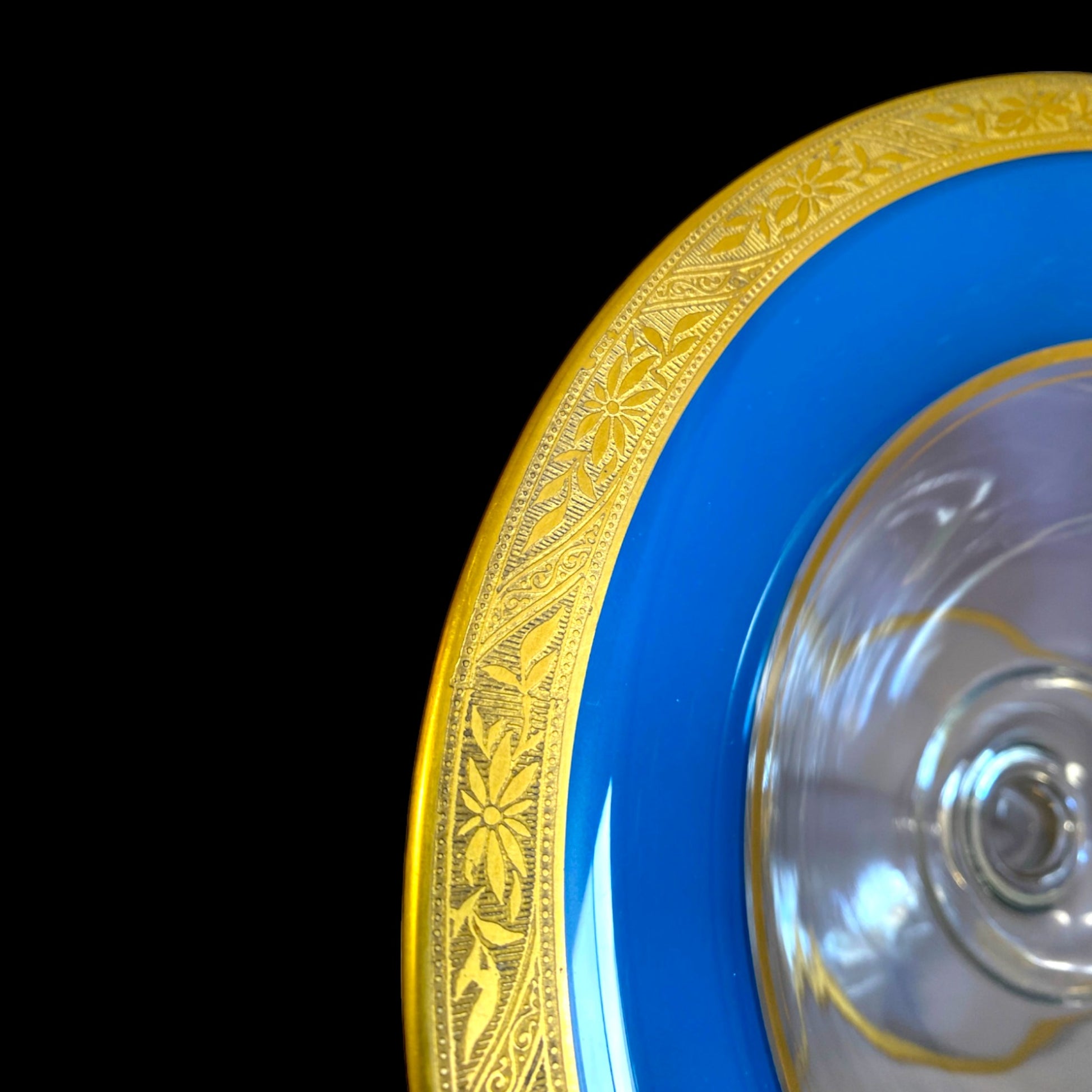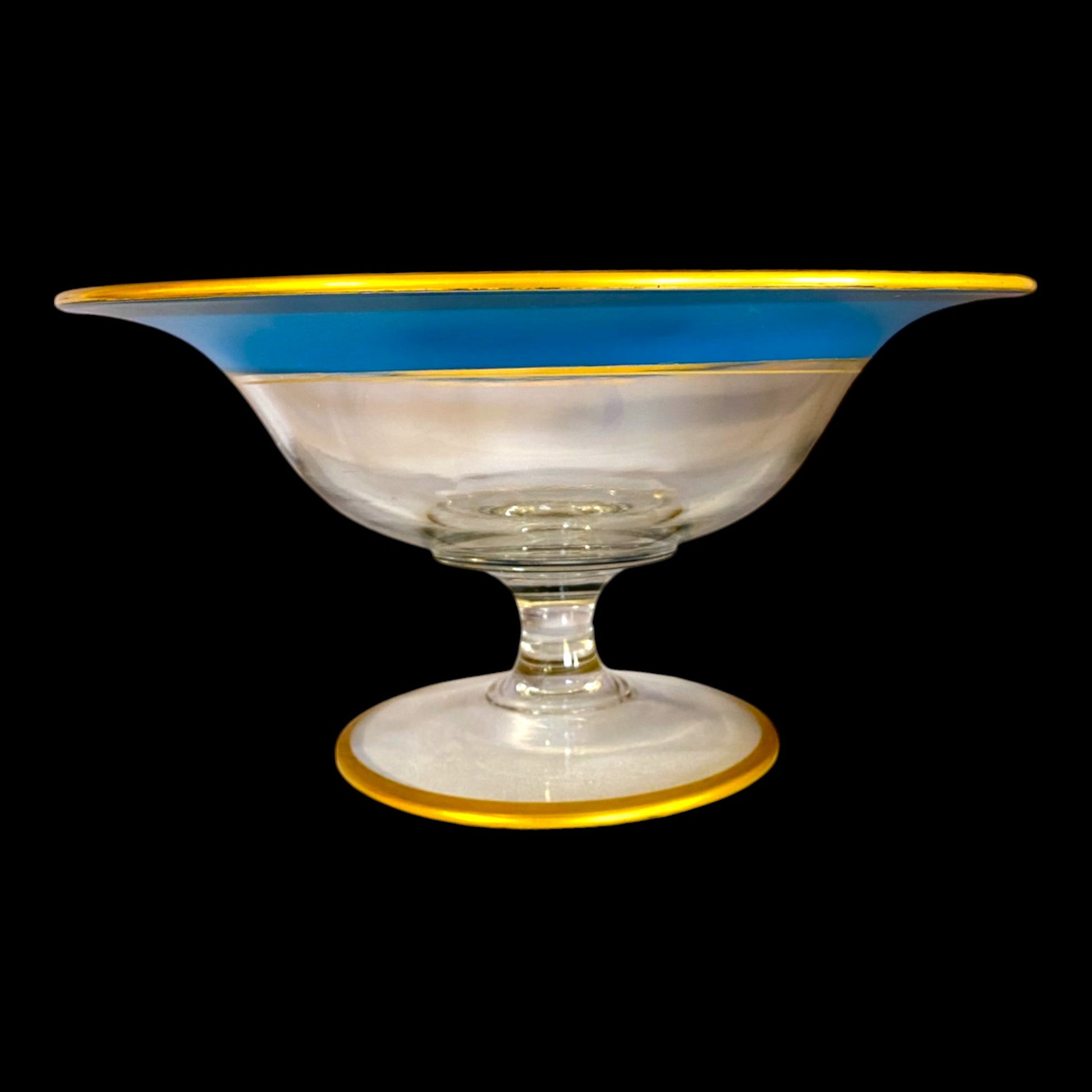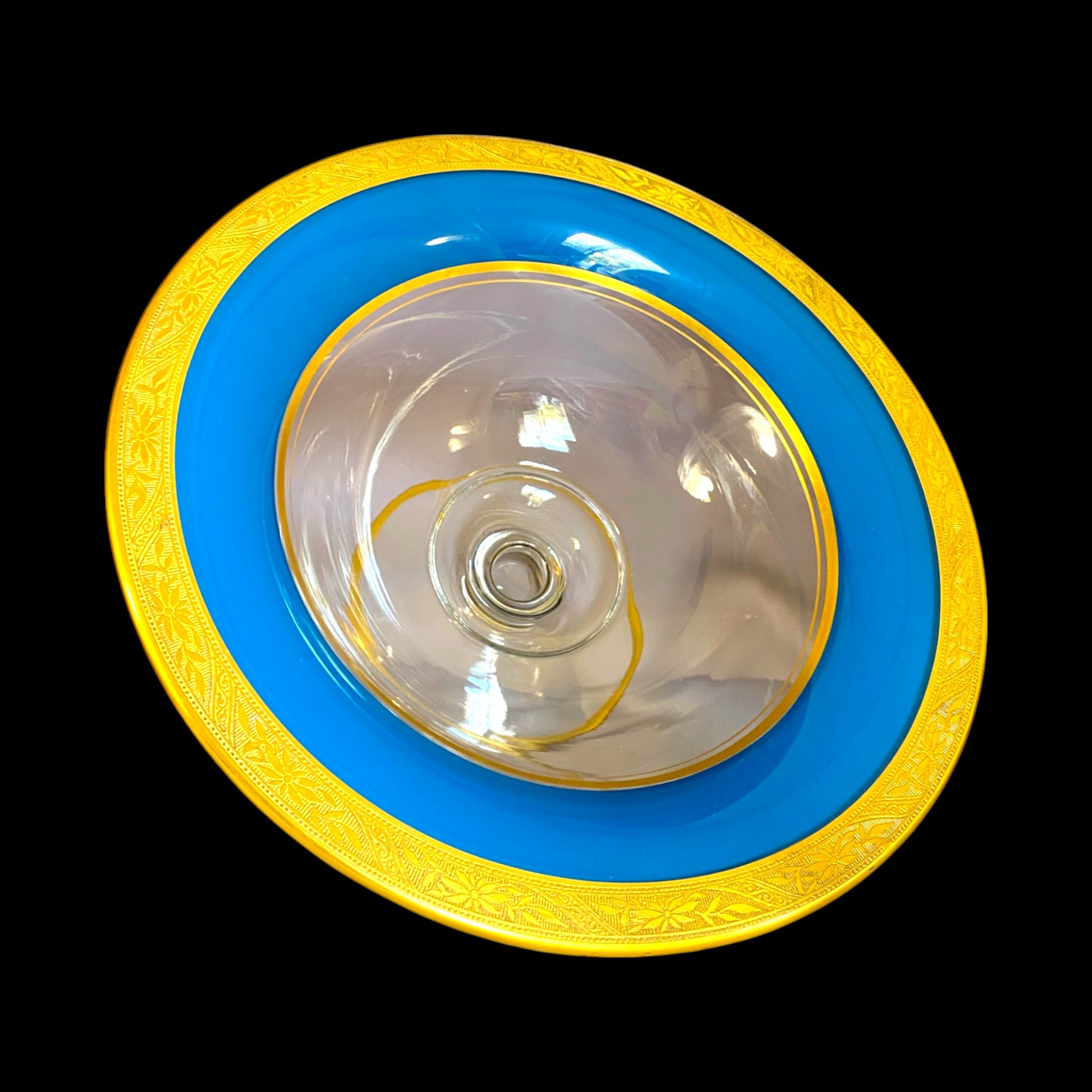 Indulge in sophistication with our Antique Clear Glass and Opaline Bowl, adorned with intricate gold embossed trim. This exquisite piece effortlessly marries timeless elegance with refined craftsmanship, creating a stunning focal point for any space. The clear glass and opaline combination lend a touch of luxury, casting a gentle glow when illuminated. The gold embossed trim adds a layer of opulence, showcasing the attention to detail that defines this antique bowl.Elevate your decor with this sophisticated masterpiece, a testament to the enduring allure of classic design. The harmonious blend of materials and meticulous gold detailing make this bowl a symbol of refined taste and timeless beauty. Add a touch of opulence to your collection with this antique clear glass and opaline bowl, where sophistication meets artistry.