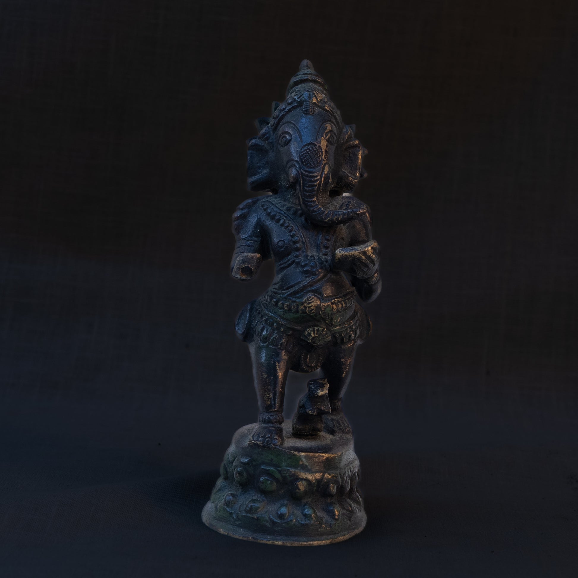Embrace the divine presence with this Standing Ganesha Bronze sculpture. Crafted with meticulous detail, this bronze piece captures the essence of the revered Hindu deity, Ganesha. The standing posture exudes grace and strength, while the bronze material adds a touch of timeless sophistication. The intricate detailing on the sculpture, from the gentle curves to the symbolic attributes, showcases the artisan's skill in bringing this sacred figure to life. Elevate your space with the spiritual energy embodied in this Standing Ganesha Bronze. Whether as a centerpiece or a thoughtful addition to your collection, this sculpture invites the blessings and wisdom associated with Lord Ganesha into your home. Embrace the divine with this beautifully crafted and spiritually significant bronze masterpiece.