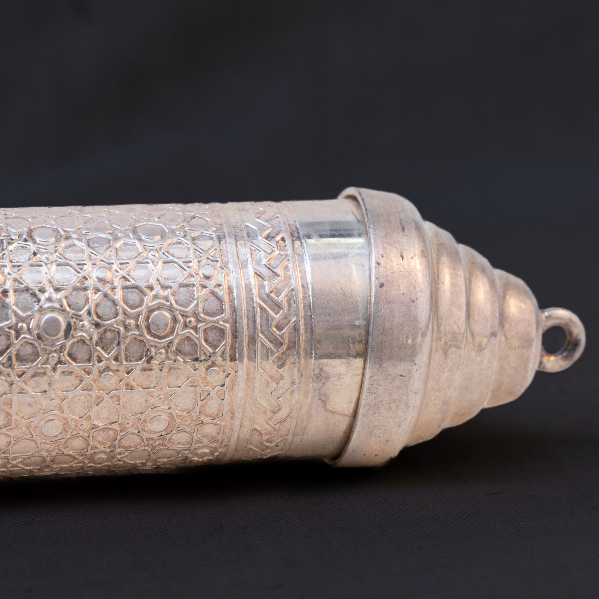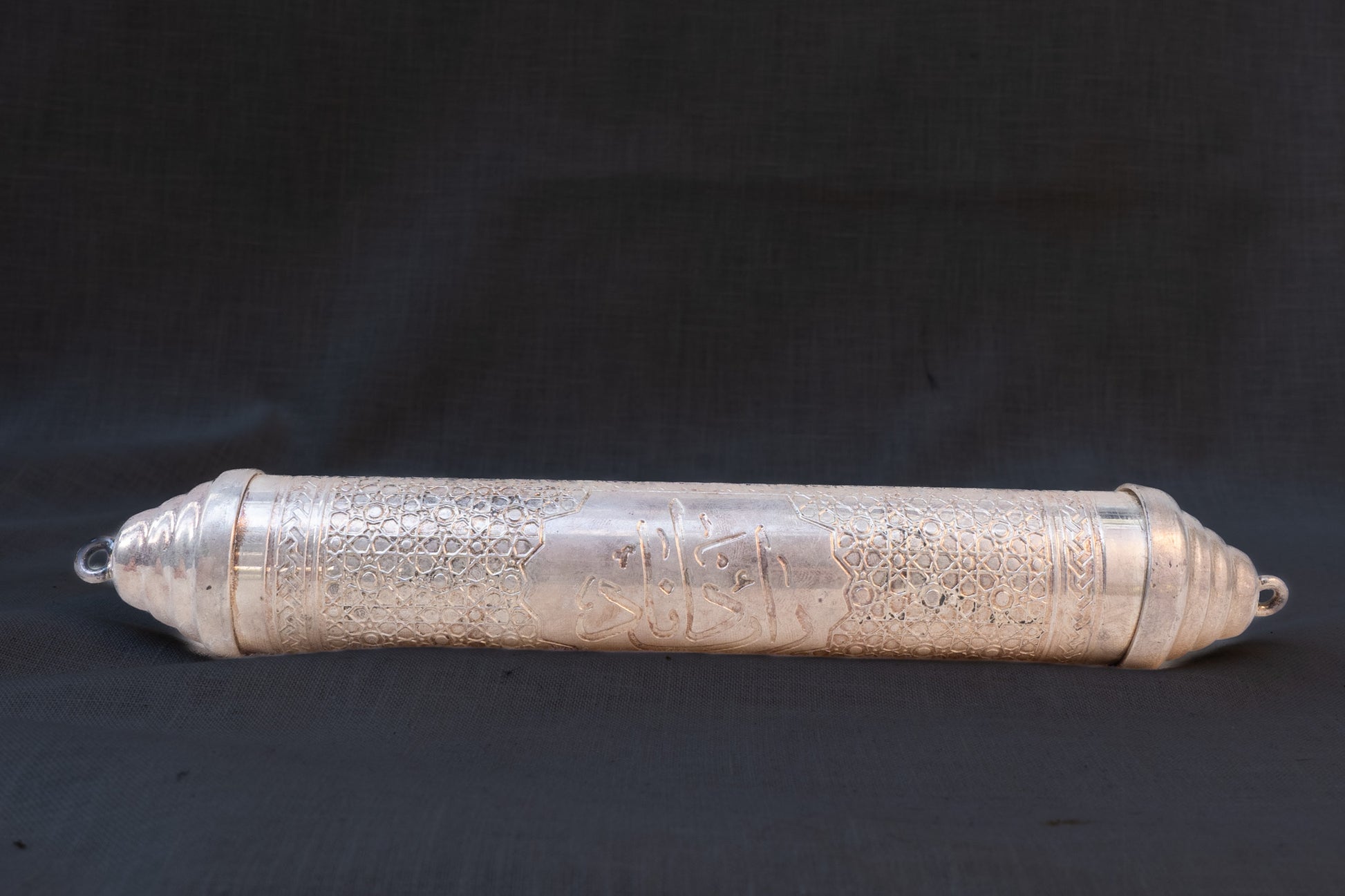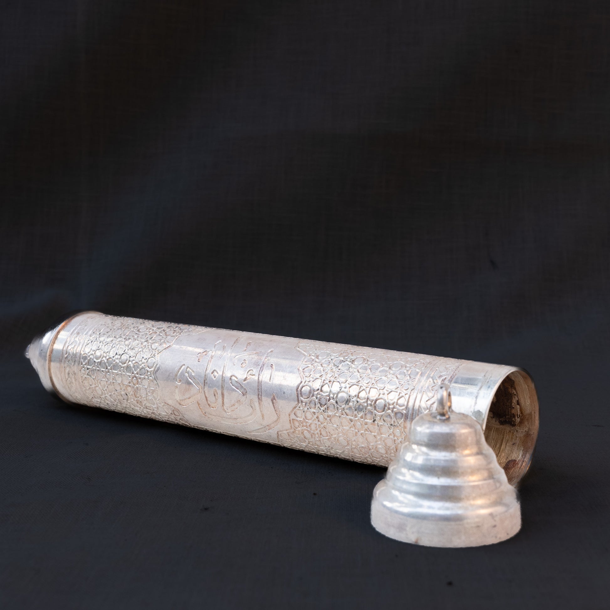 Elevate the sanctity of matrimony with this Silver Islamic Marriage Scroll Holder. Crafted with exquisite detail, this scroll holder is designed to symbolize the sacred bond of marriage within Islamic tradition. The silver construction reflects both elegance and durability, embodying the timeless significance of the commitment shared in marriage. Intricate engravings, often featuring Islamic calligraphy or geometric patterns, add a touch of cultural richness to this special piece. This scroll holder is not just a functional item but a symbol of the enduring bond and spiritual commitment in Islamic marriages. Whether displayed as a centerpiece during wedding ceremonies or cherished in your home, it encapsulates the profound cultural and religious heritage associated with marriage in the Islamic tradition. Embrace the beauty and significance of this Silver Islamic Marriage Scroll Holder as a timeless representation of love and commitment.