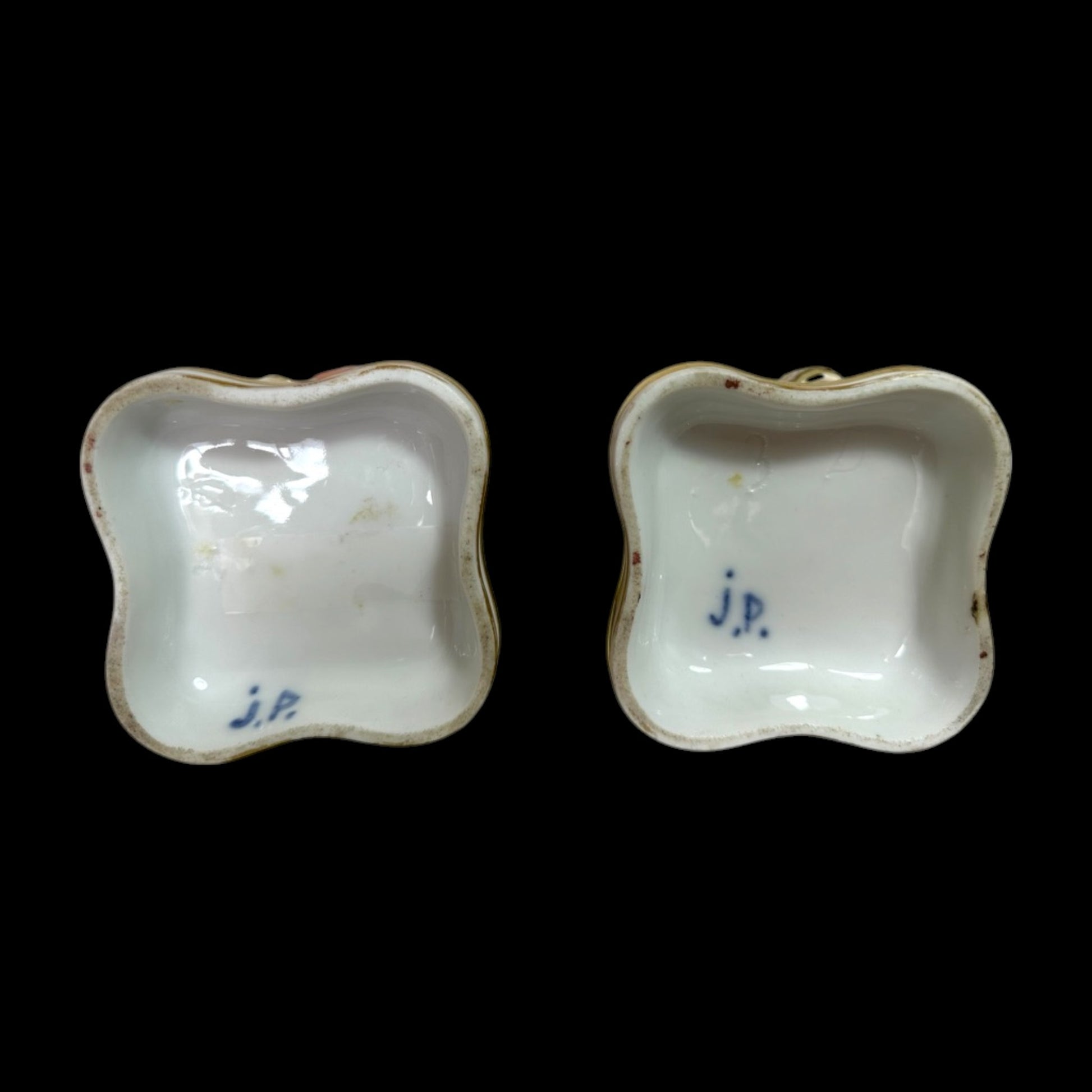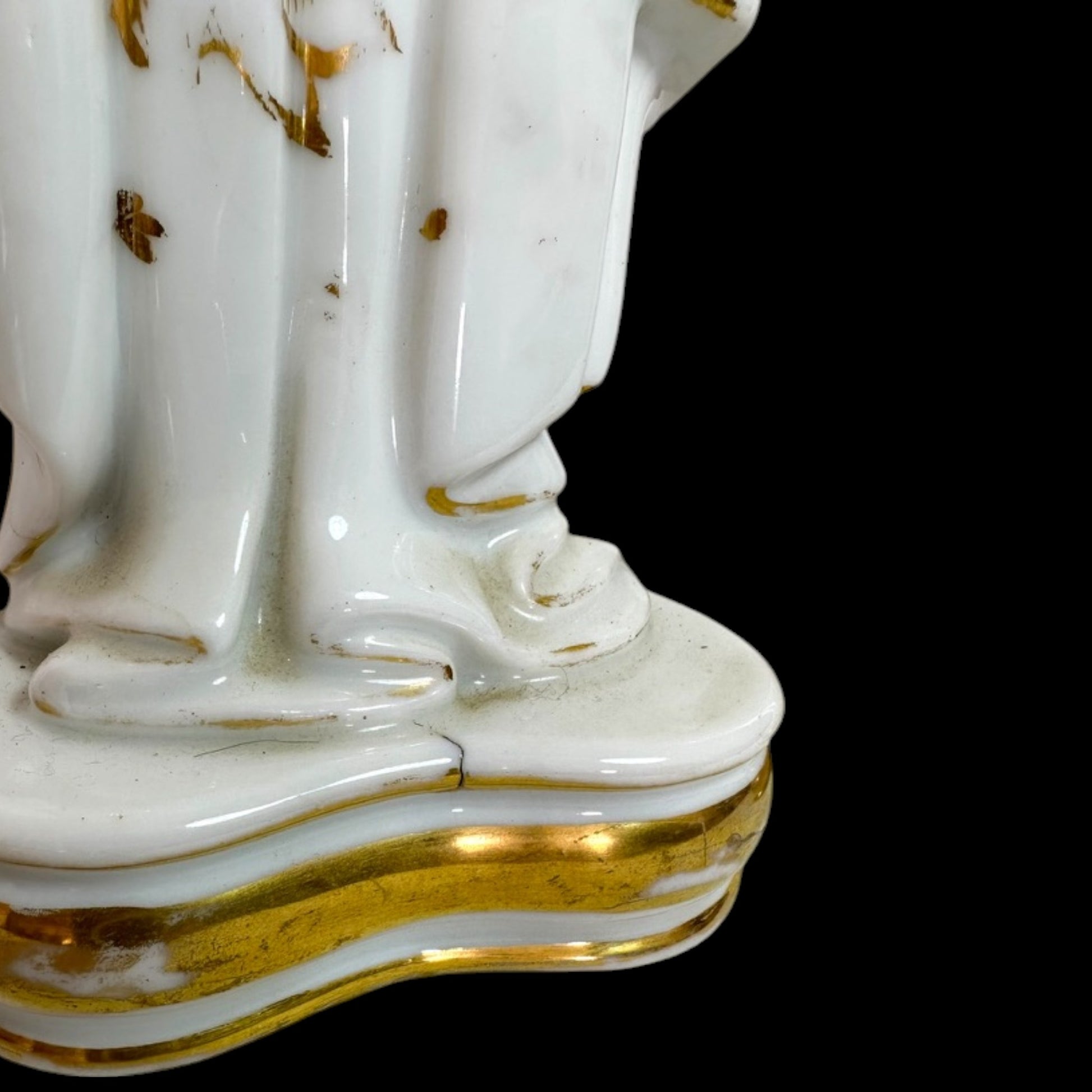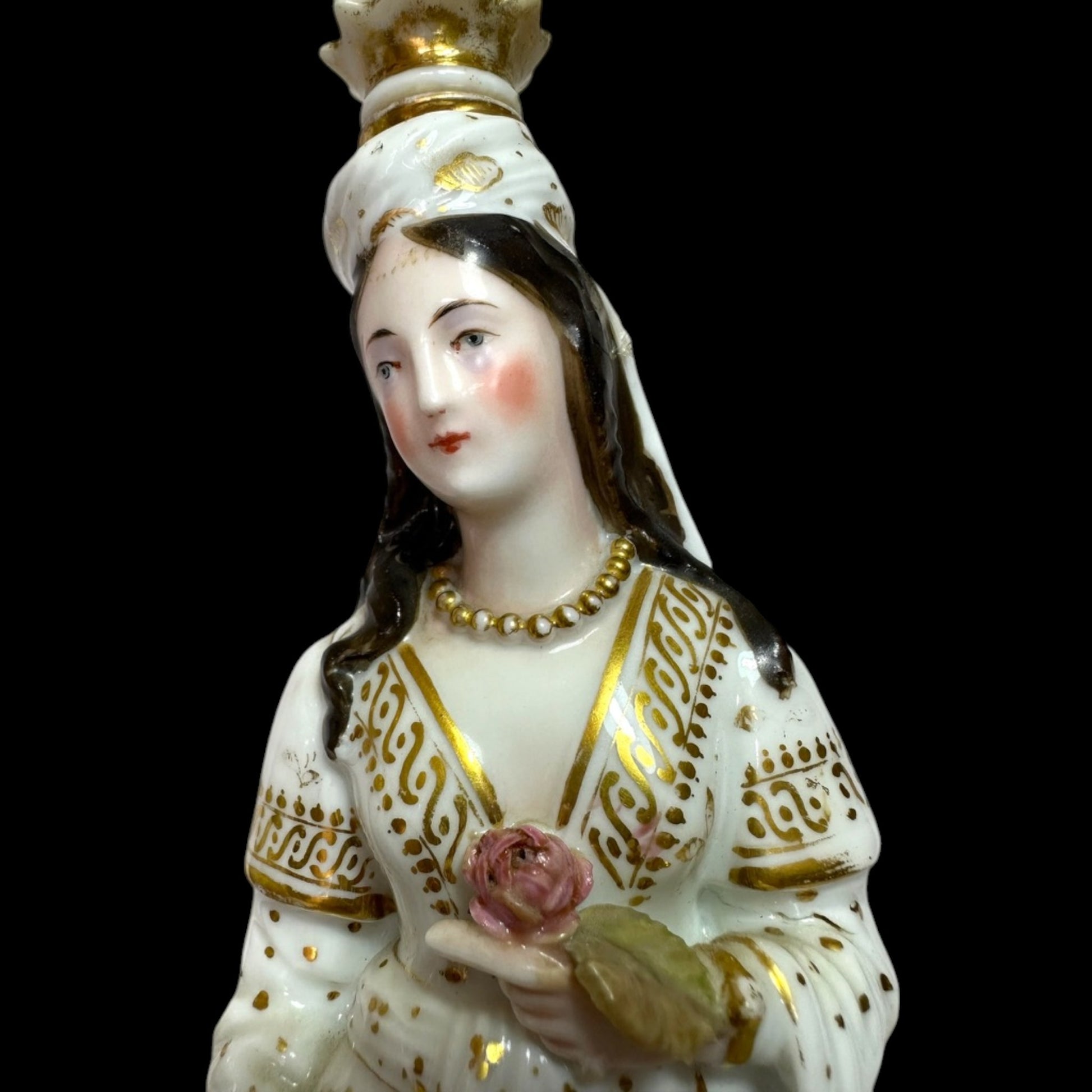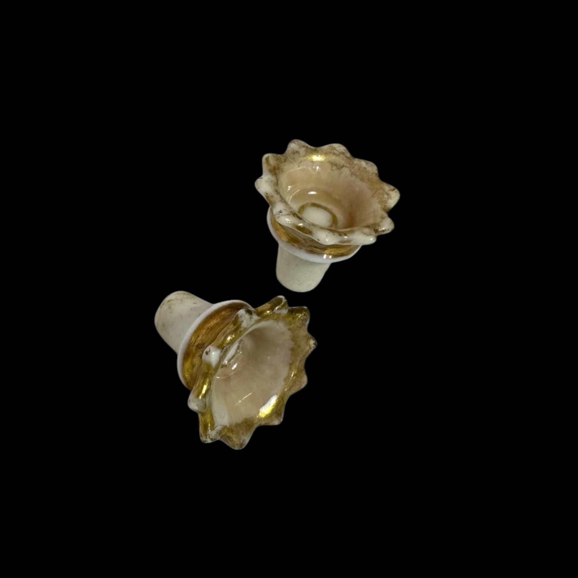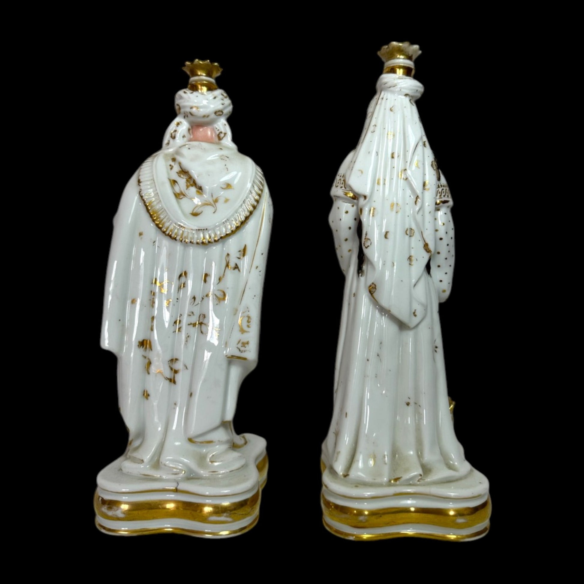 Antique Pair Of Jacob Petit Porcelain Sultan & Sultana Bottle / Candle Holders. Early 19th century Jacob Petit Porcelain Factory, two porcelain perfume bottles in the shape of Turkish sultan and sultana in white gilded robes. Signed under the base. There is some fading to the gold and a hairline fracture in one of the pieces, please refer to photos. This is an excellent addition to any serious collection of French Porcelain, or orientalist objects.