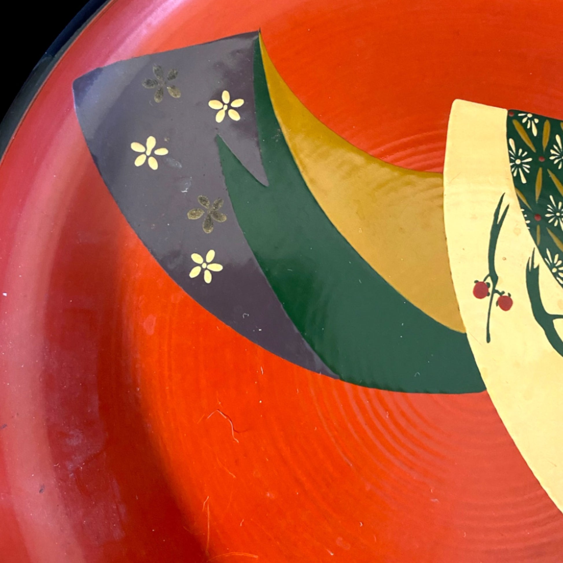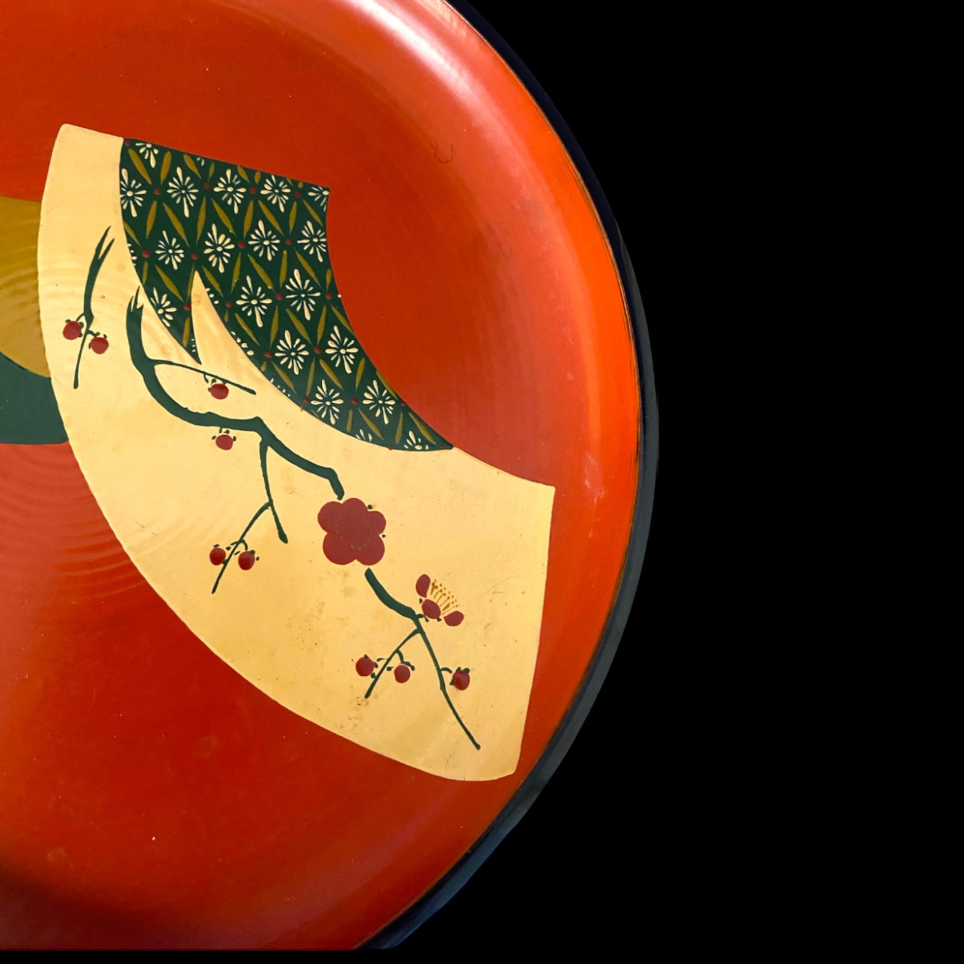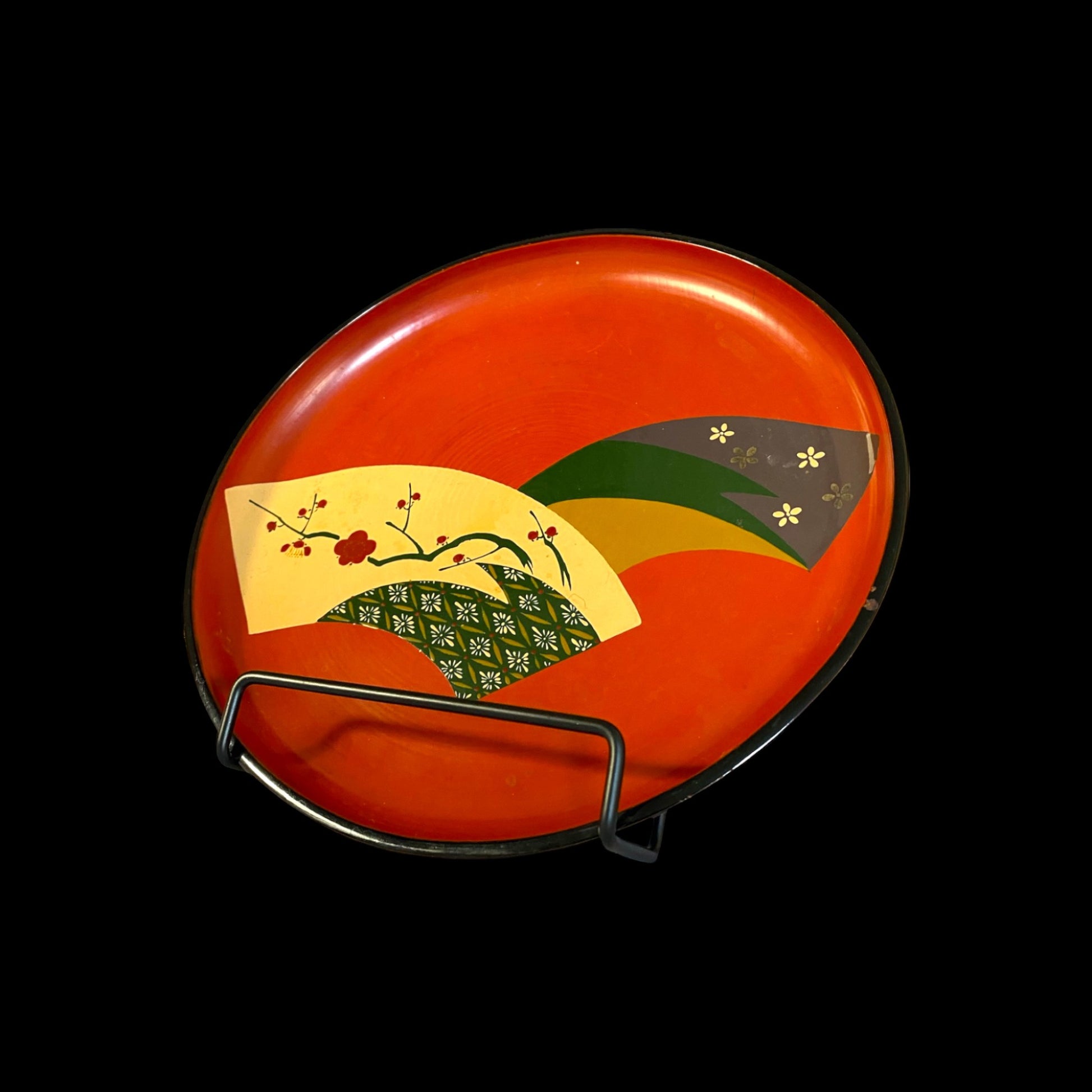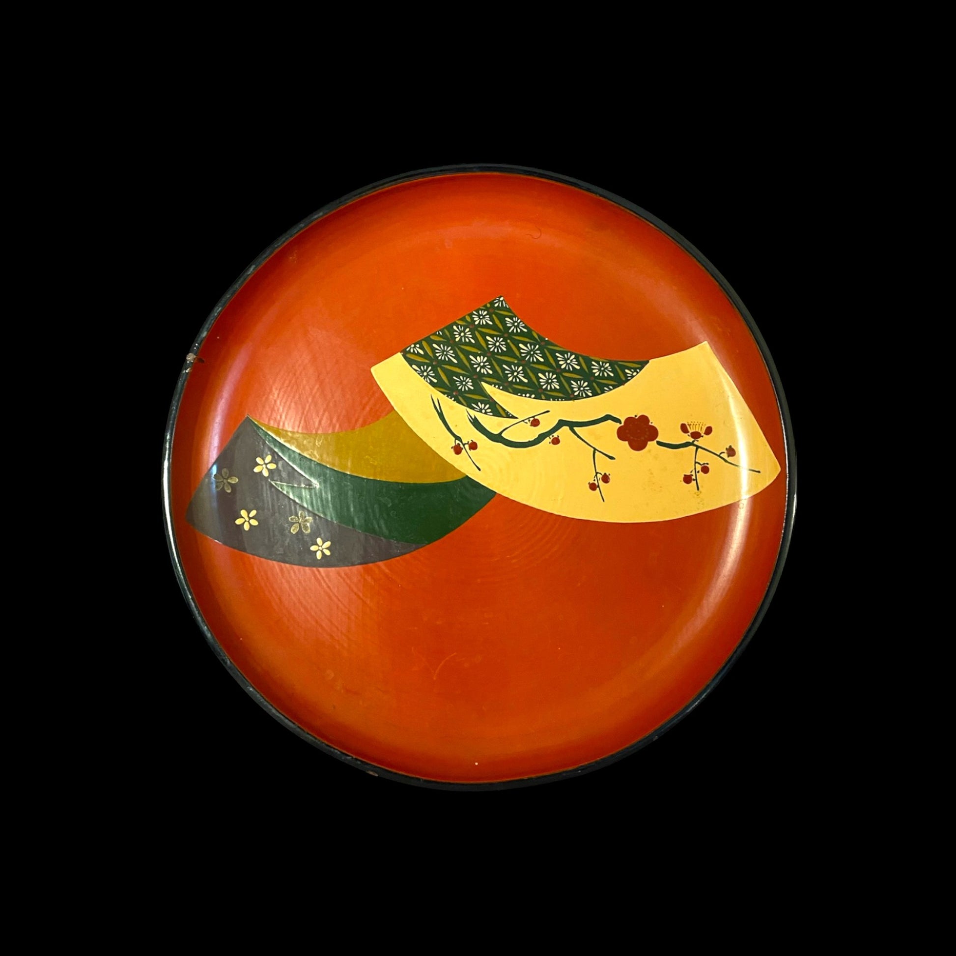 Immerse yourself in the elegance of the 1960s with this Small Japanese Lacquer Plate. This exquisite piece features a delicate fan motif, meticulously handcrafted with traditional Japanese lacquer techniques. The plate, with its sleek and timeless design, captures the essence of Japanese artistry from the mid-20th century. The lacquer finish not only enhances its visual appeal but also adds a layer of durability. The fan motif, a symbol of grace and beauty, is an intricate detail that adds a touch of sophistication to this small yet captivating plate. Own a piece of Japanese history with this vintage lacquer plate. Its subtle charm and artistic detailing make it a unique addition to any collection, seamlessly blending the beauty of the past with the present.