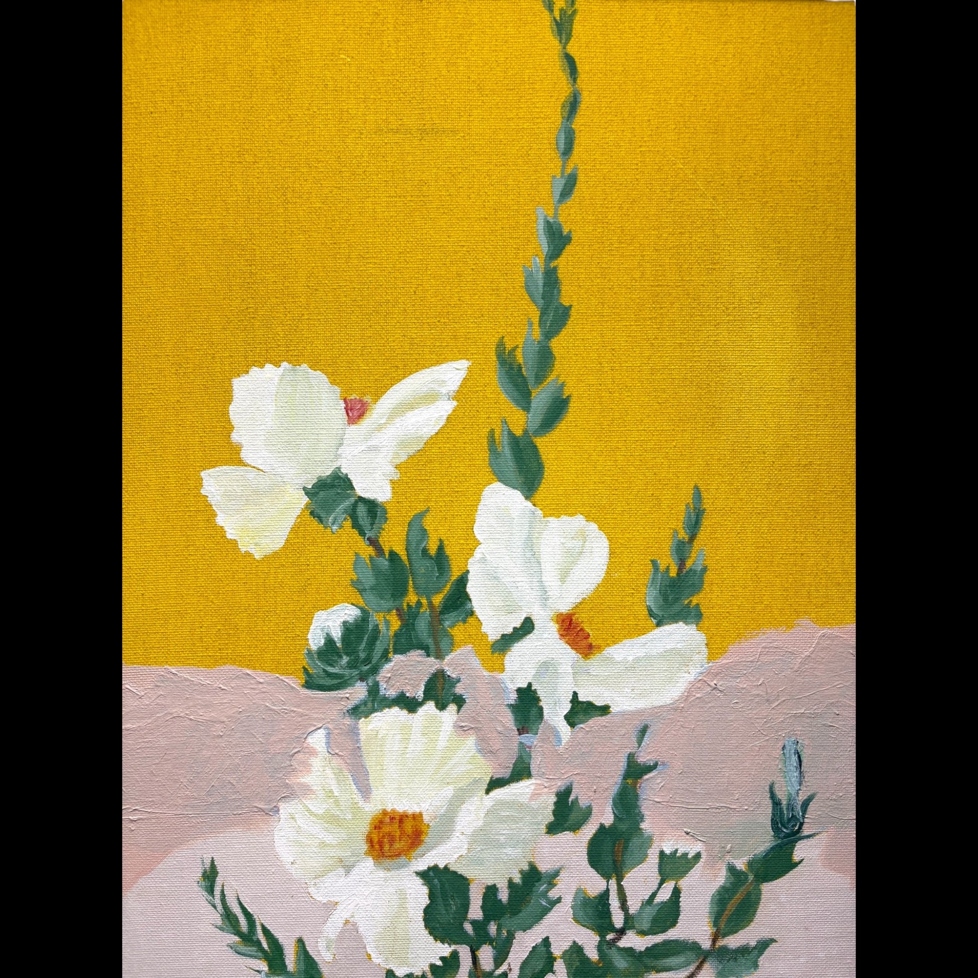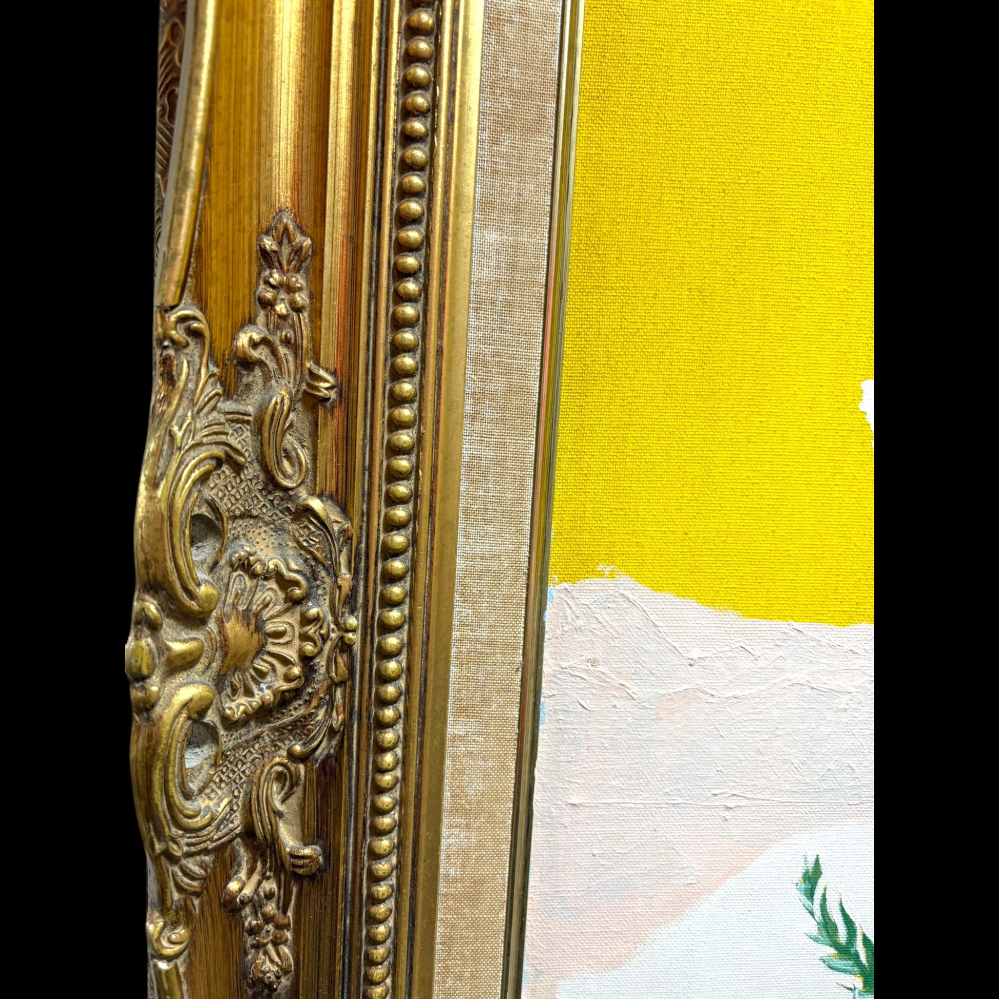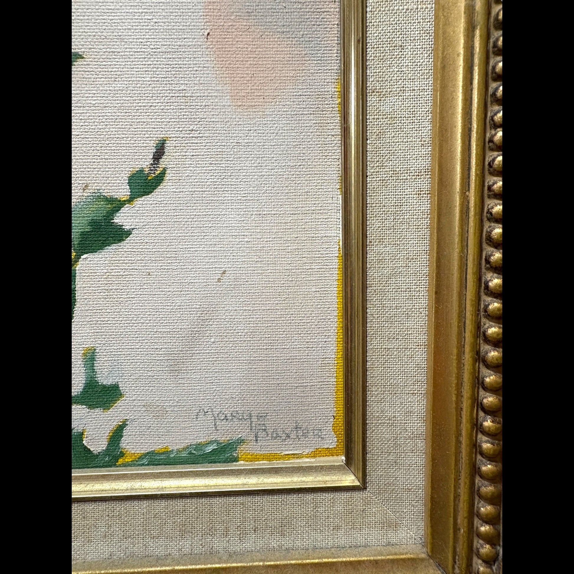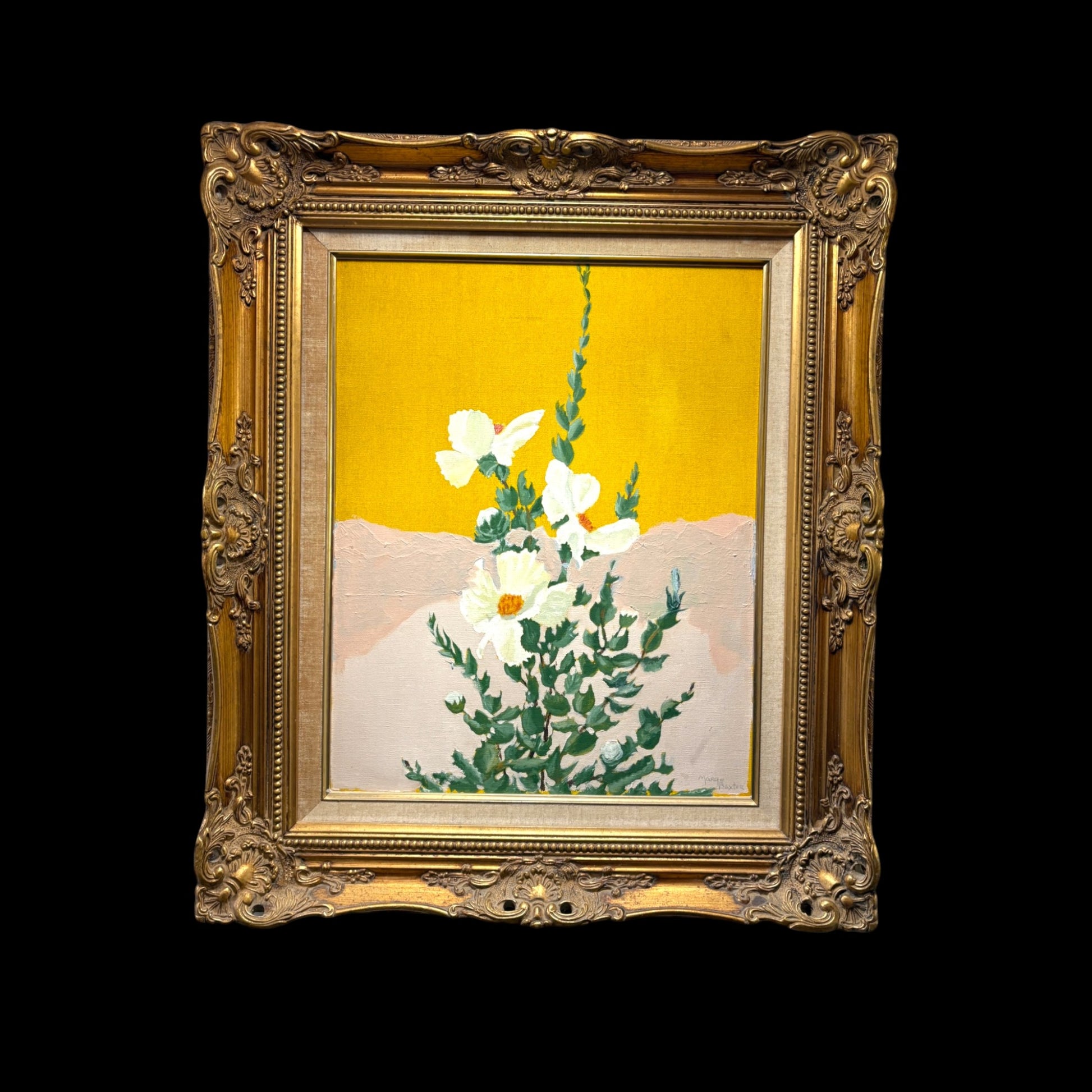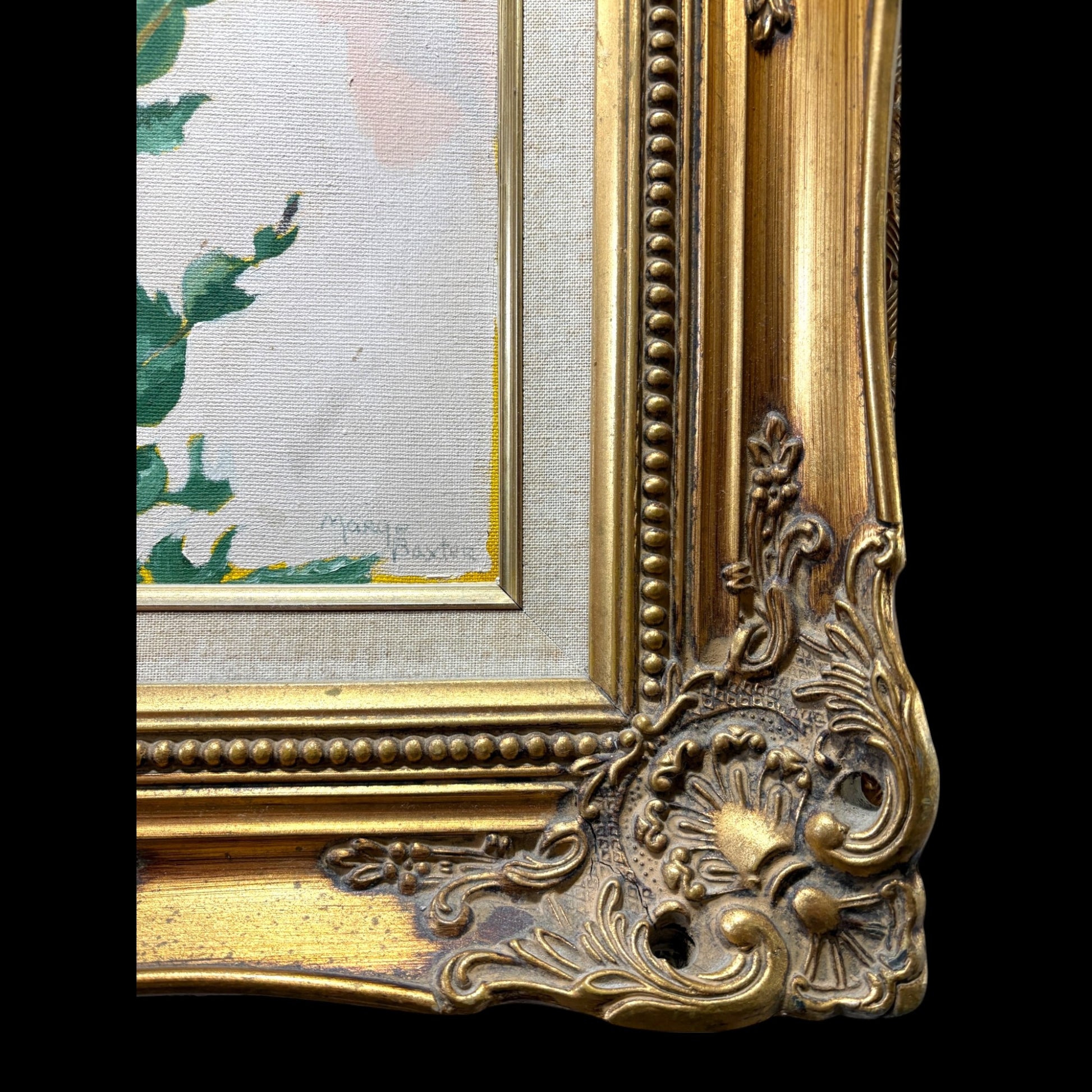 Modern Painting of " A Thistle Poppy Plant" by Marge Baxter. The Painting would be a breathe of fresh air in any interior, featuring a bright colors and beautiful flowers in the foreground. Presented in a classical giltwood frame, this piece is simple and sophisticated.