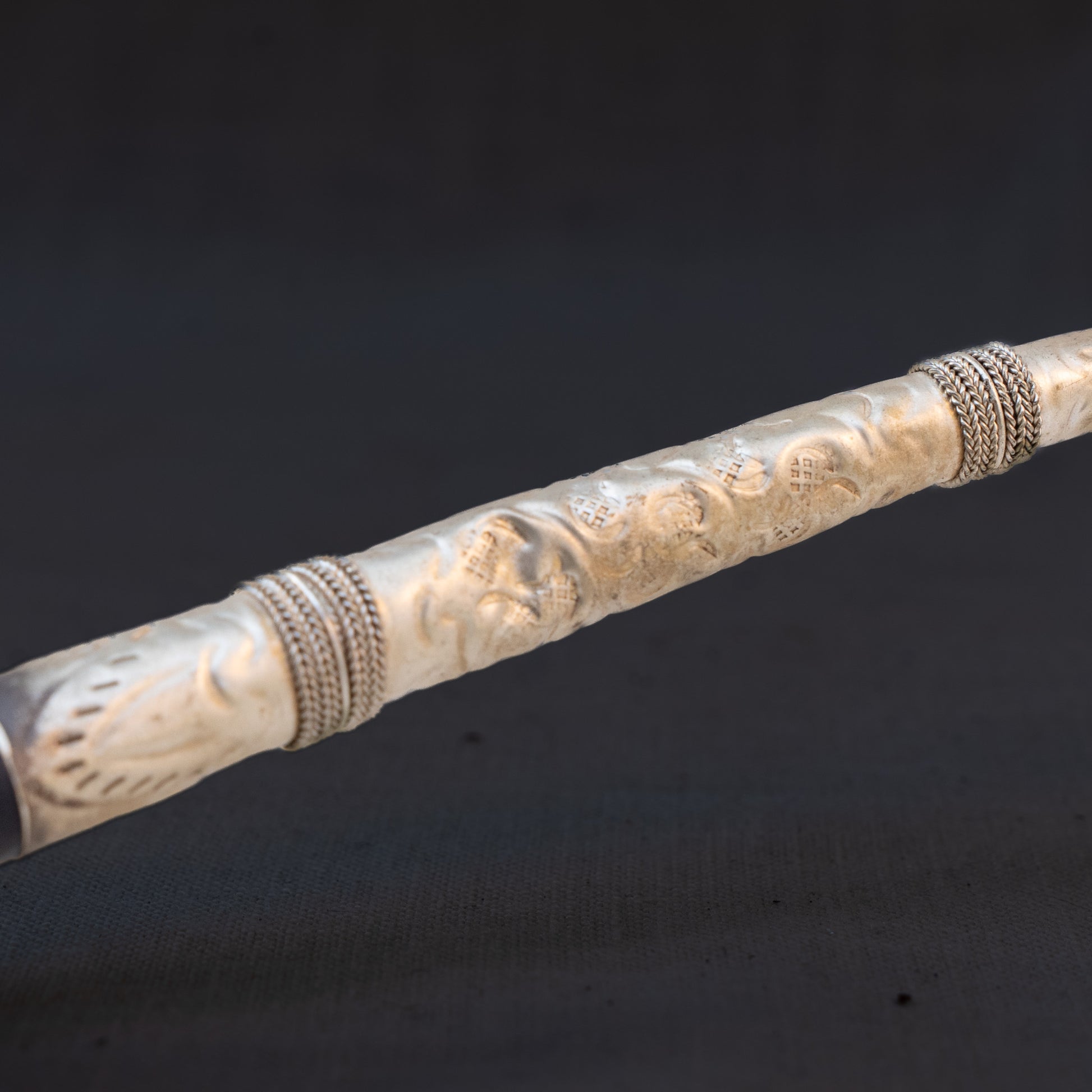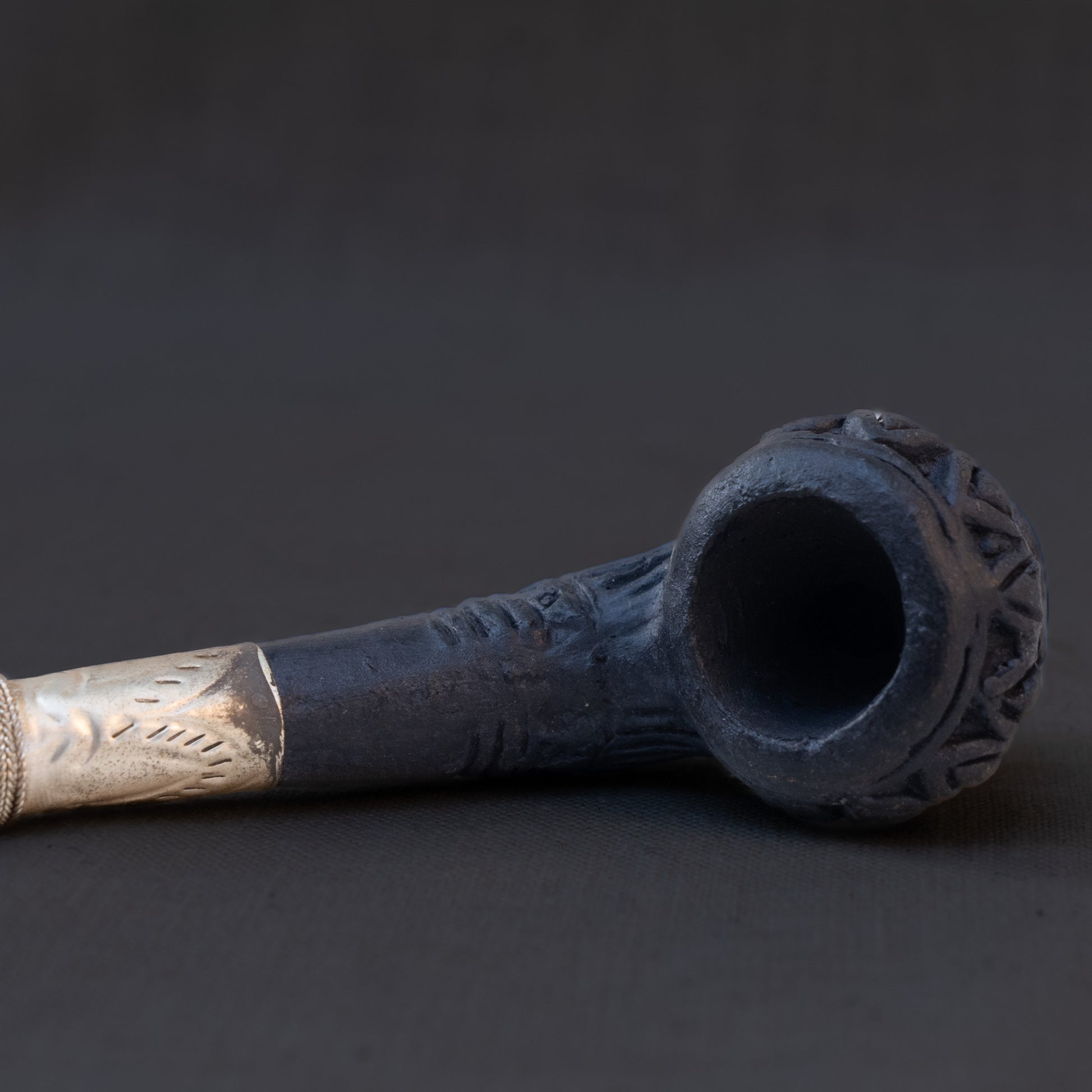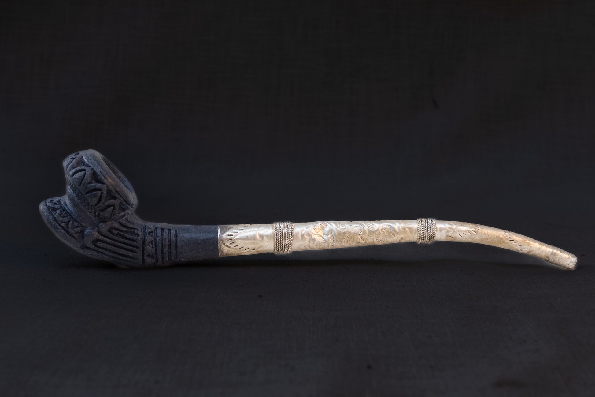 This is an antique Tibetan Ritual Pipe, made of clay and silvered brass or bronze. In excellent condition, this would be a great addition to any oriental or tobacciana collection. Found in Barcelona Spain.
