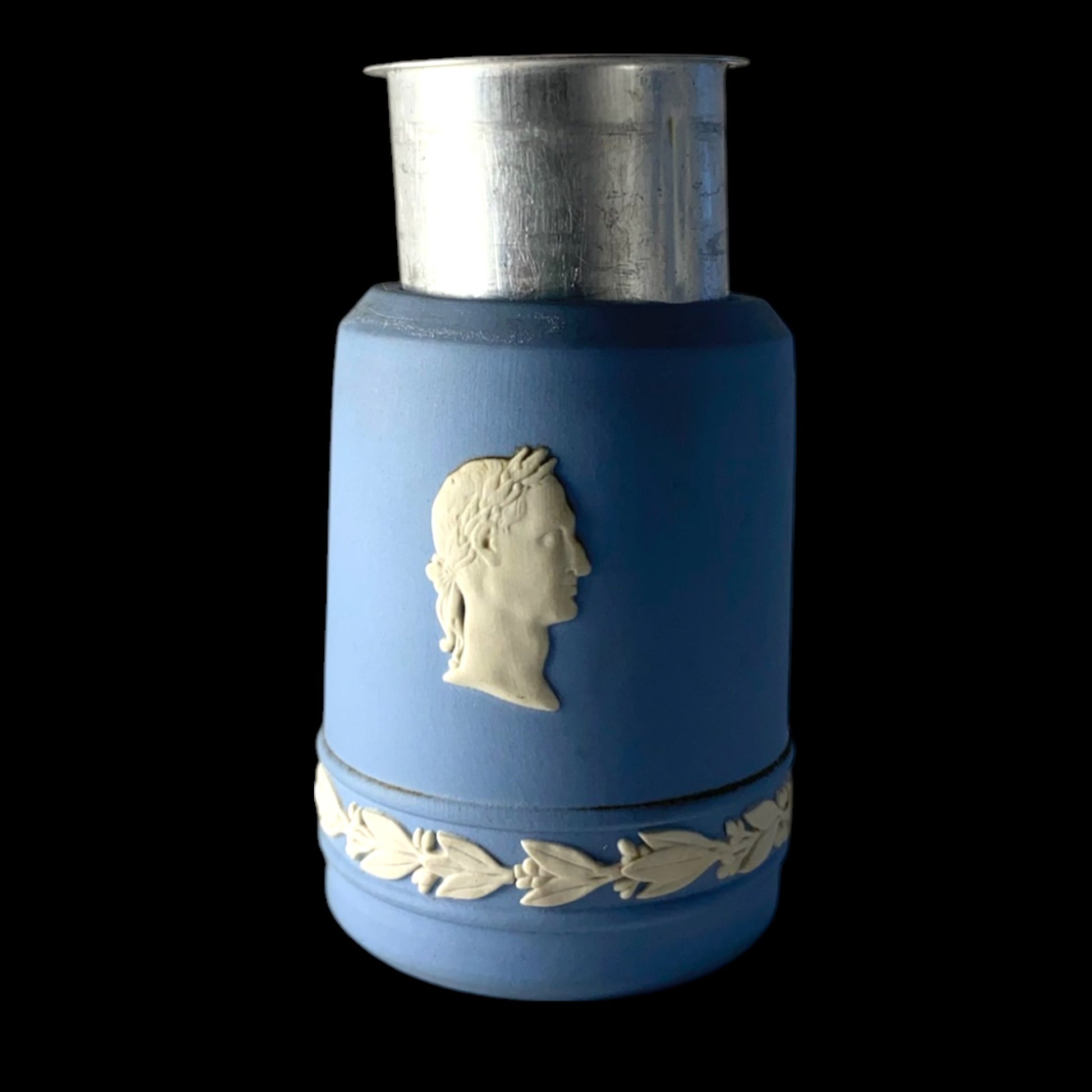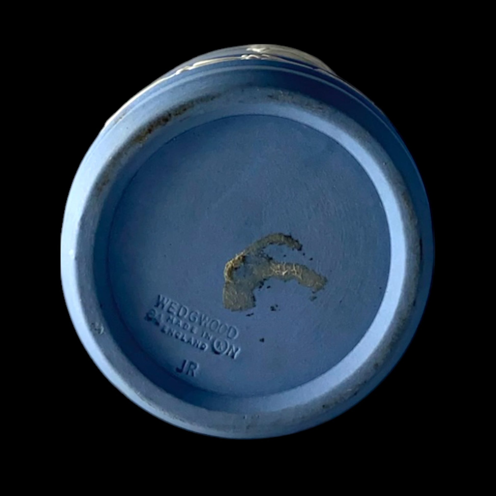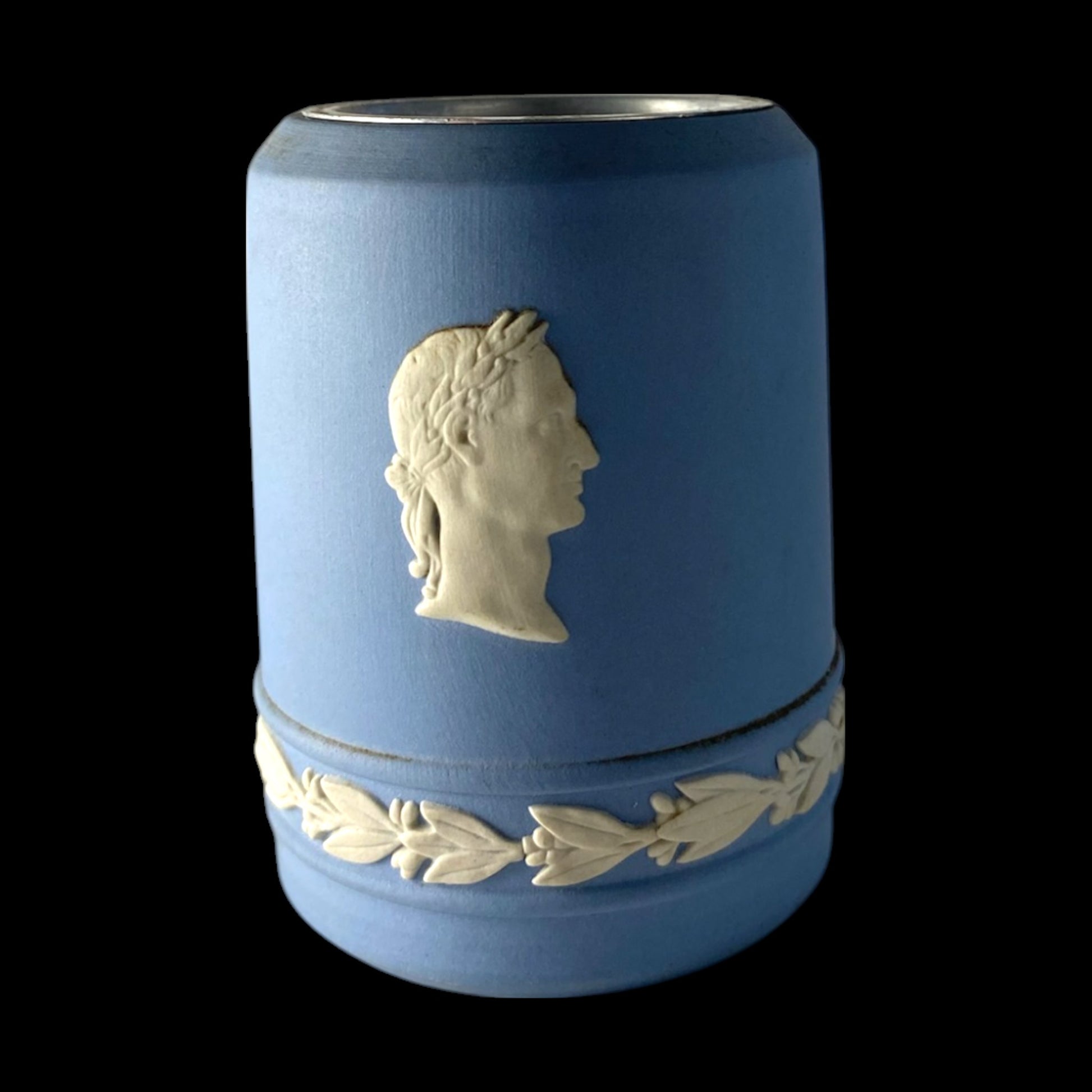 This is a Vintage Blue Jasperware Wedgewood lighter case featuring the bust of Julias Caesar. The lighter components have been removed, so this would make a great toothpick holder. Found in Buckingham's High Street Flea Market.
